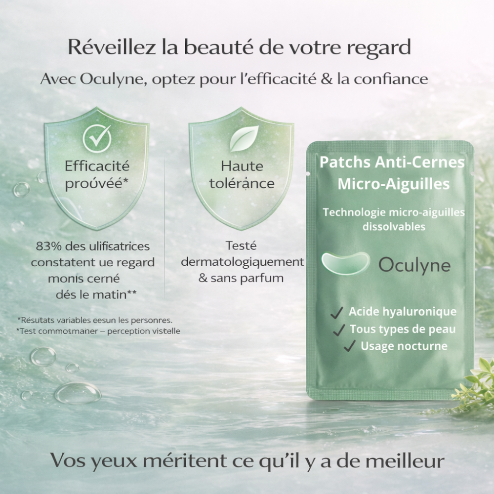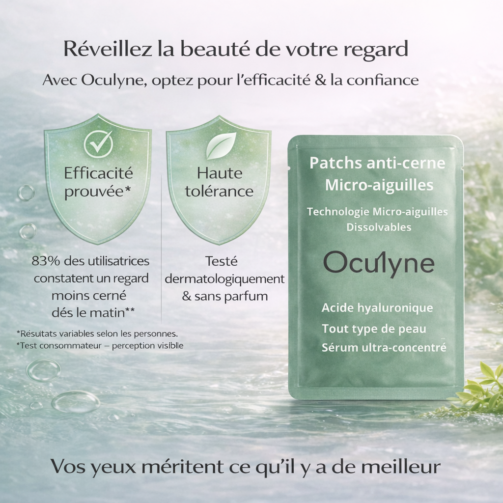 Les patchs Oculyne ont été conçus pour convenir à différents types de peau, y compris les peaux sensibles, grâce à une diffusion douce et ciblée des actifs.