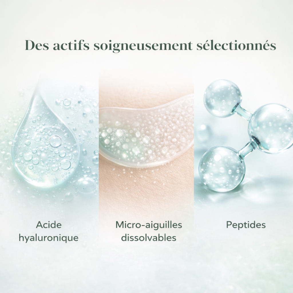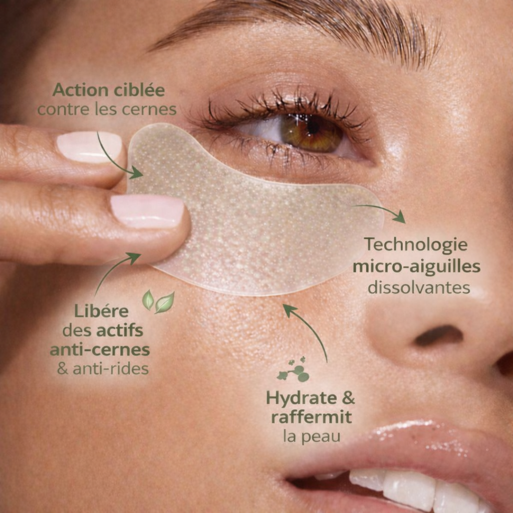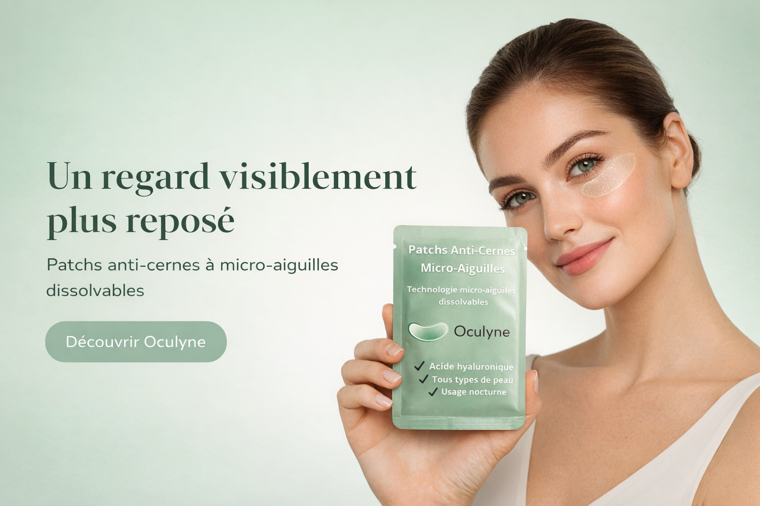Contrairement aux crèmes qui agissent principalement en surface, les patchs Oculyne utilisent des micro-aiguilles dissolvables pour diffuser les actifs directement au niveau du contour des yeux.